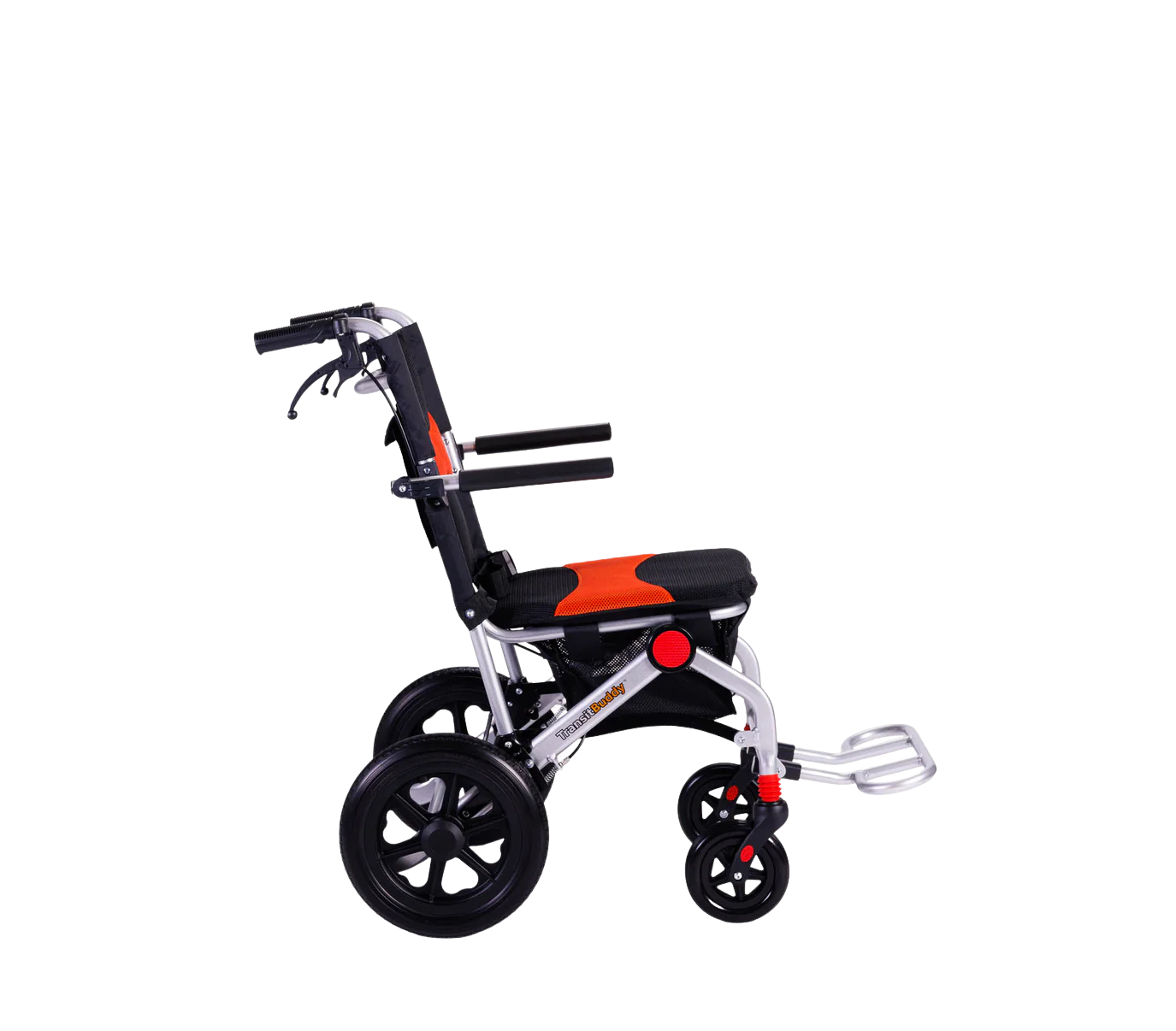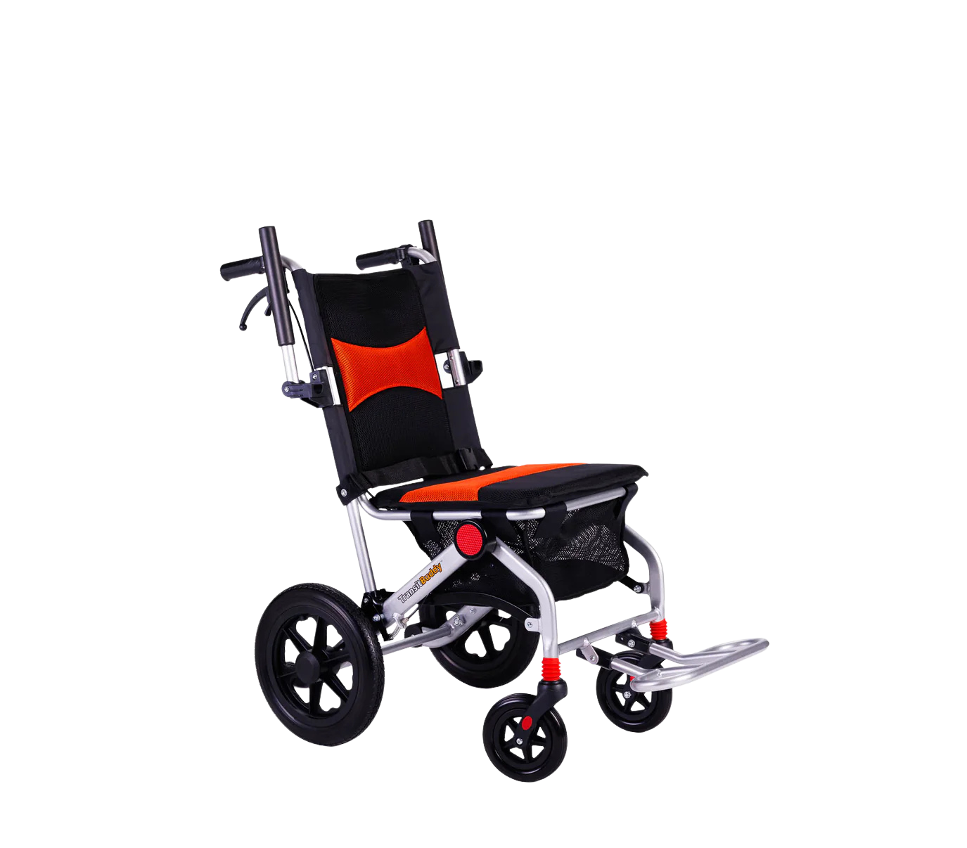 Designed with user convenience in mind, the TB1 features fixed-height, flip-up armrests and foldable footrests, facilitating comfortable seating and easy side transfers. The chair’s lockable handbrake system provides added safety during stationary use. Its compact design allows it to fold down effortlessly, fitting into car boots for seamless travel and storage.