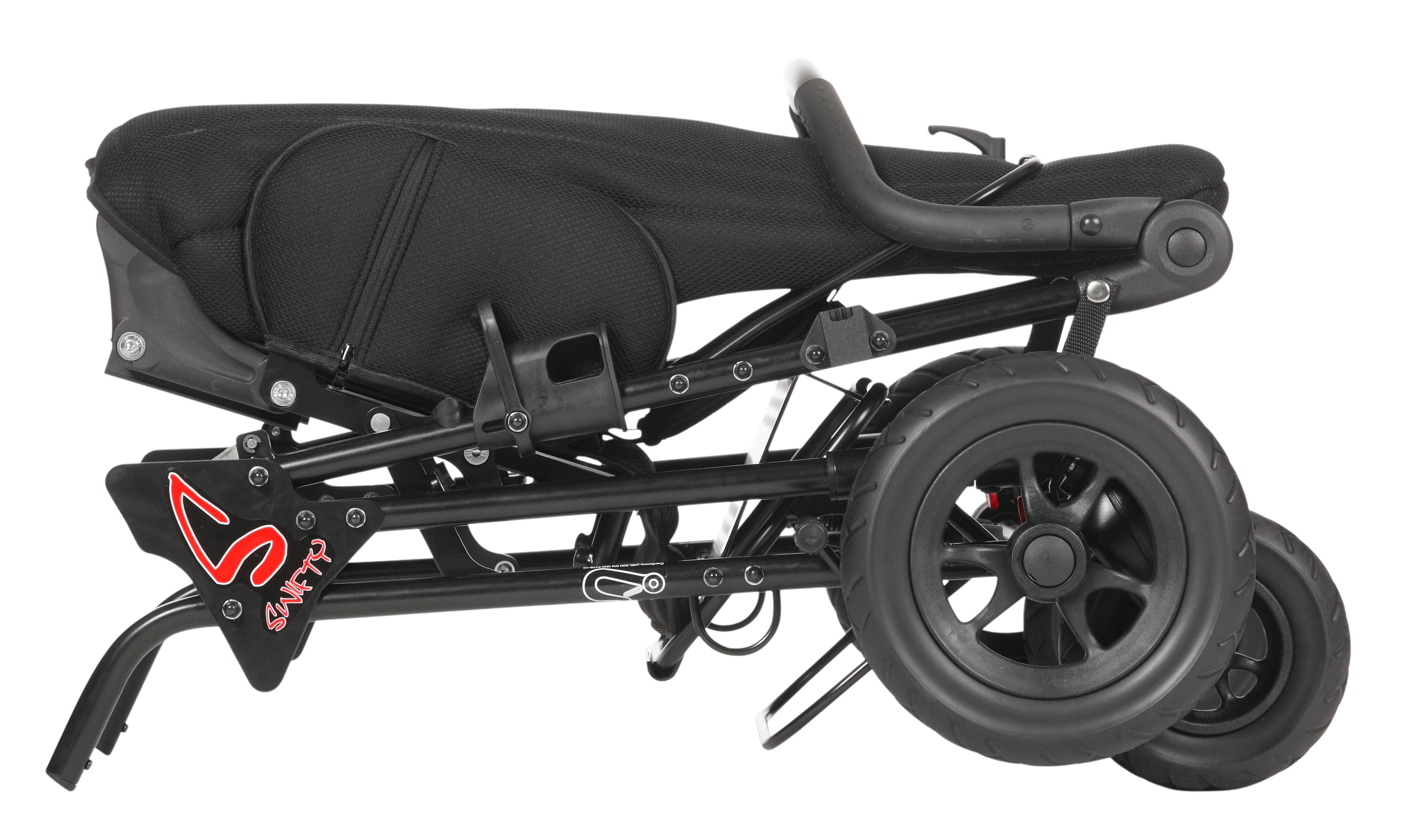 - Seat depth adjustable without tools – even while the child is sitting in the Swifty